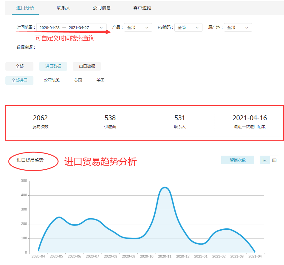 顺利获得九州ku游官网数据,外贸人可以清晰地看到采购商的进口交易信息(采购频率、采购数量,交易规模),判断开发价值,以此来选取目标客户,同时还能够获取目标地区贸易公司常用运货方式、包装方式,便于节约沟通时间,降低开发成本。