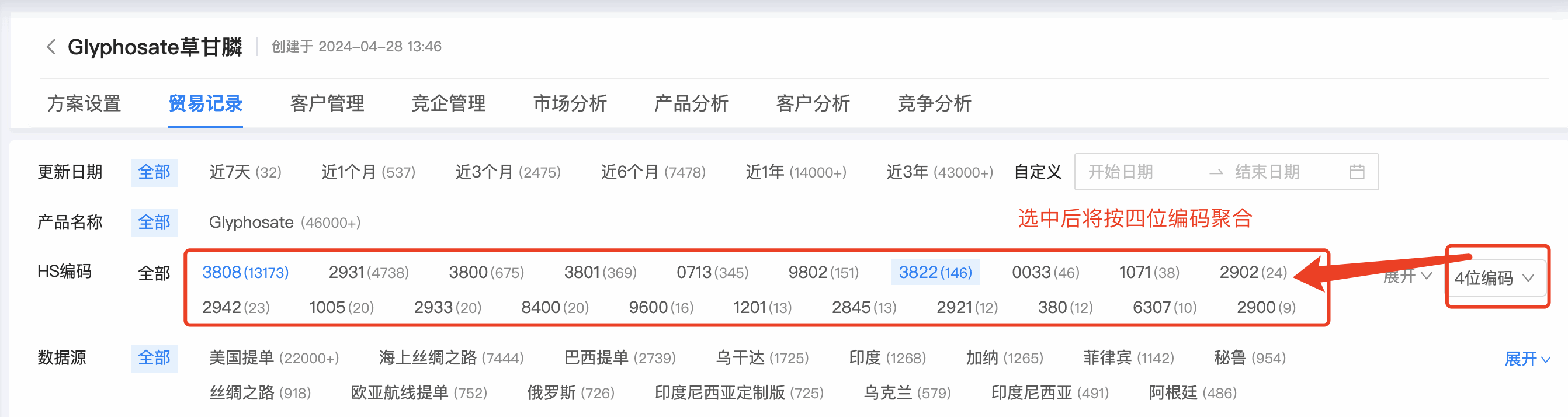 九州ku游官网数据通产品更新——贸易记录可按照编码筛选