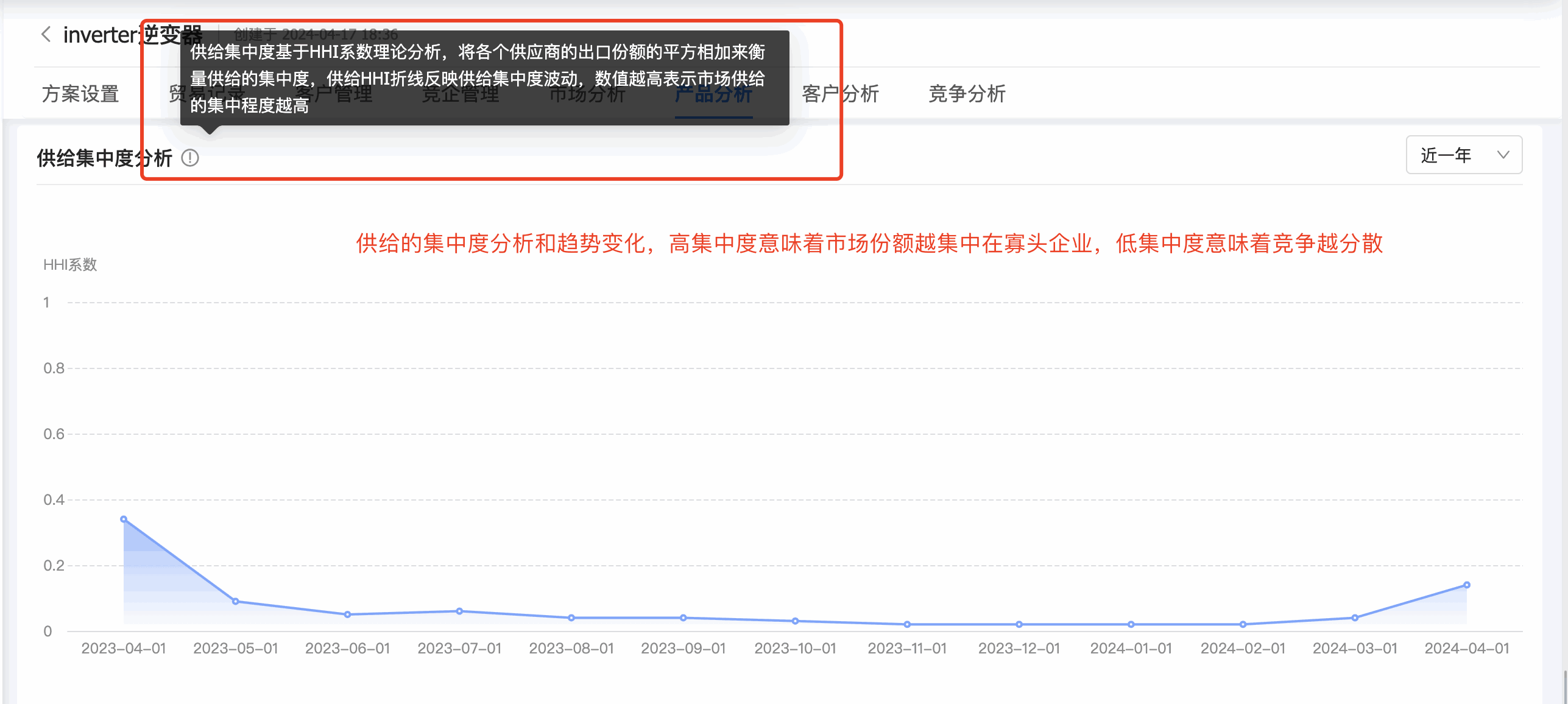 4. 九州ku游官网商情洞察产品分析新增「供给集中度」:企业可以分析市场上供应商的集中程度。